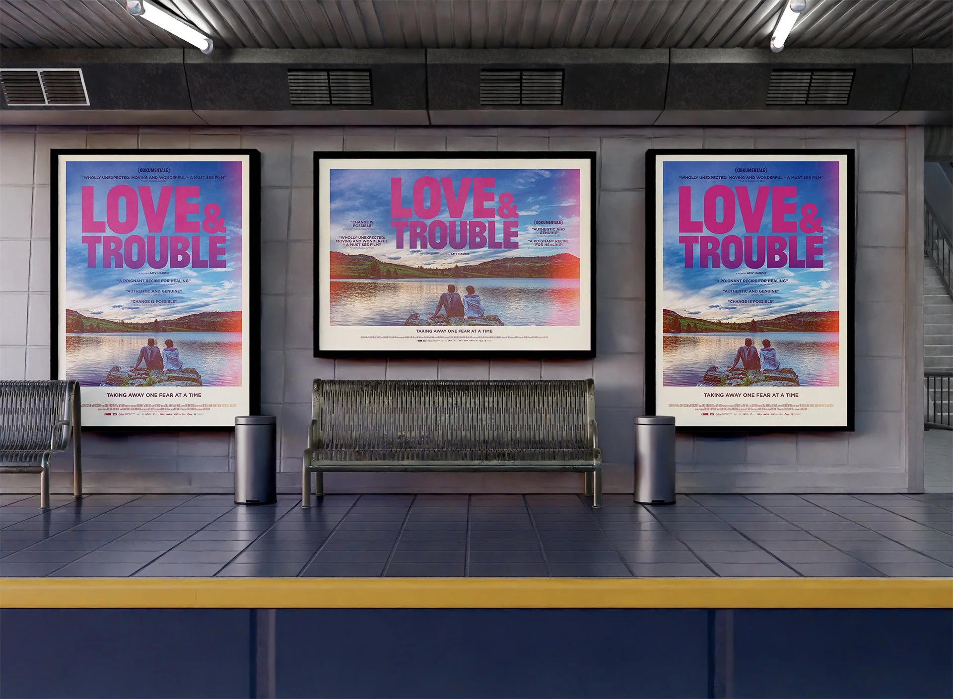 Key art for Love & Trouble. Amy Hardie’s documentary about Kenny and Kerry who marry with secrets. Kerry has never discussed her childhood abuse, and when Kenny's PTSD is triggered by his newborn's crying, it almost blows their young family apart.
