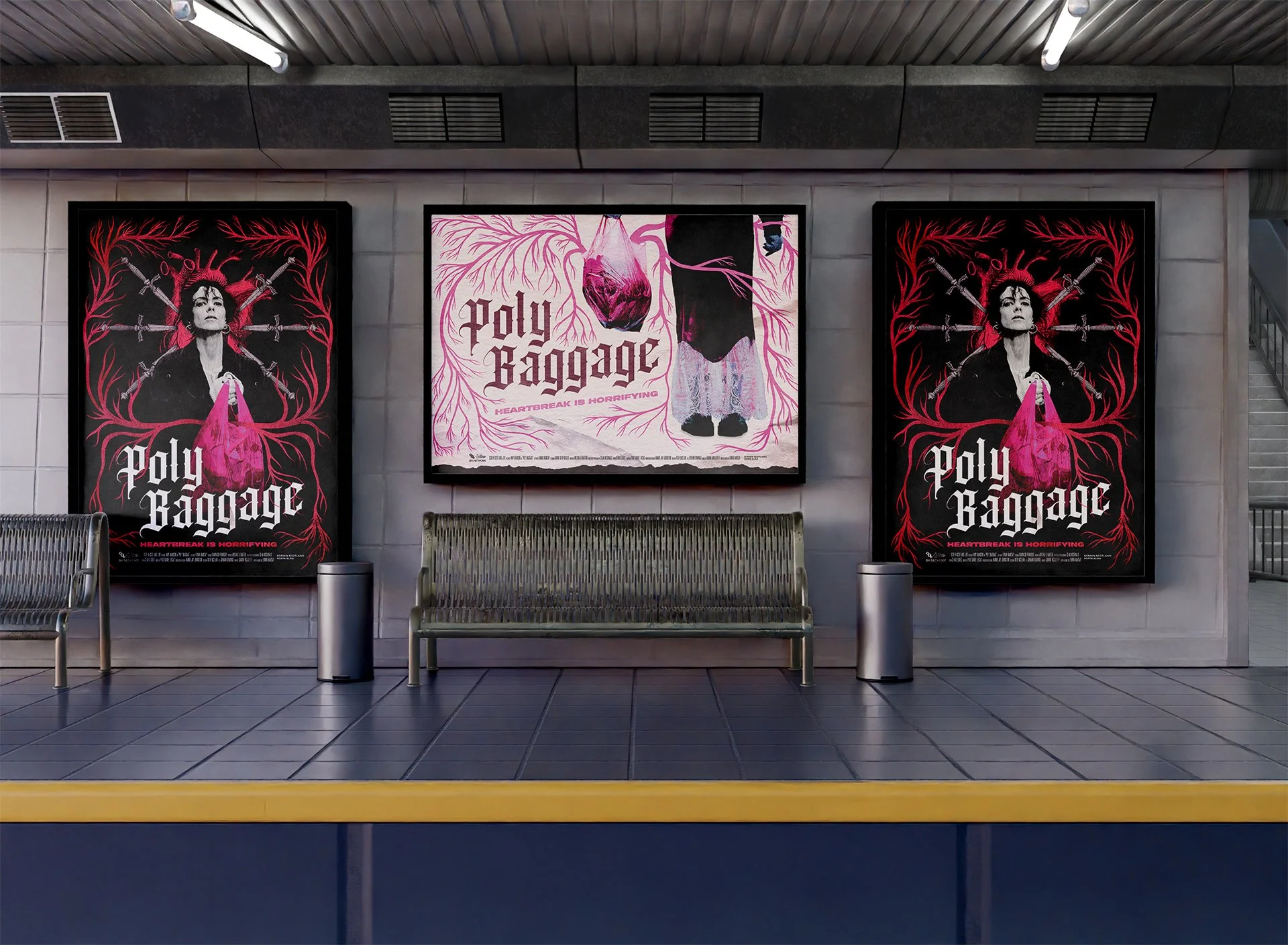 Key art for short film Poly Baggage, directed by Emma Ramsay. After a painful breakup, Polly takes drastic action to physically remove her heart to stop the emotional pain. Her friend discovers this and desperately tries to reverse the process.